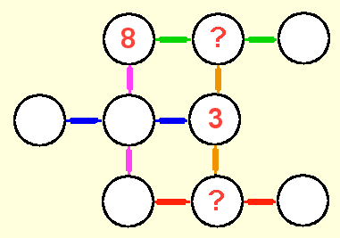 des nombres contenus dans trois cercles reliés en ligne doit être