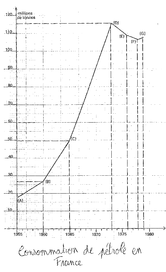 Quelle quantité de pétrole utilisait-on en 1973 ? Quelle est la quantité utilisée entre 1955 et 1965 ?